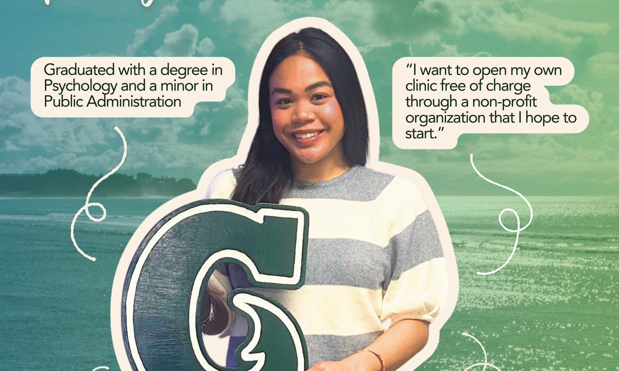 Two determined and persevering students, Tadashi Hiura and Kiara-Teryn Pangelinan, are the first recipients of the Single Parent & Child of Single Parent Scholarship, created by Ms. Feore to help lighten students’ burdens as they pursue higher education.